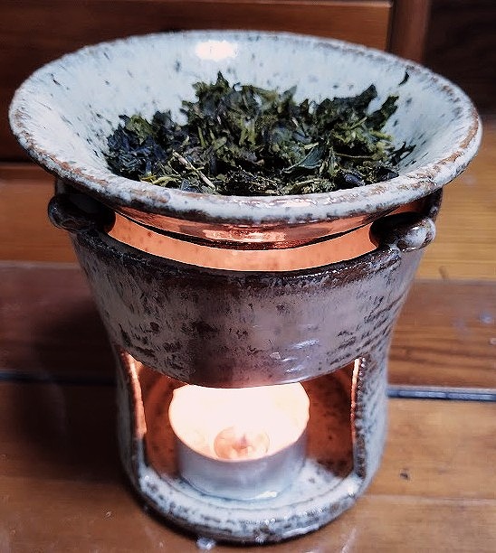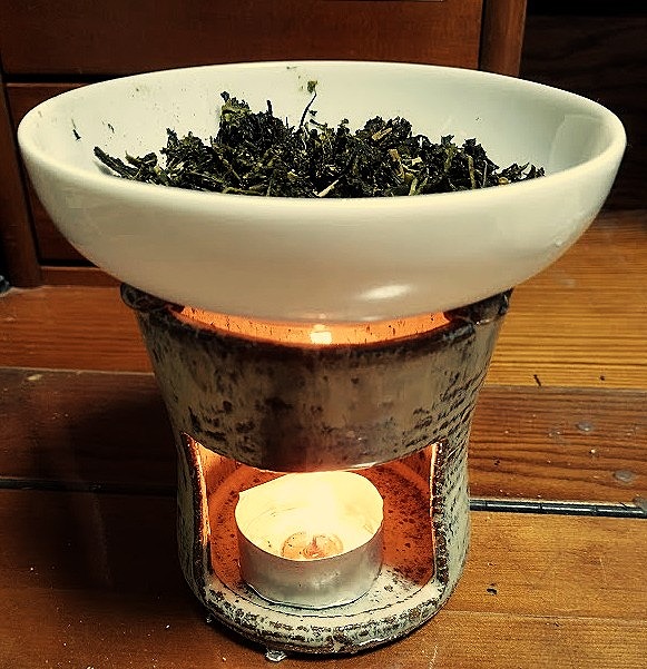 日課としている体操(ヨガ・ストレッチ・筋トレ等の自己流混合)の間、生乾きのデガラシを茶香炉で煎る。